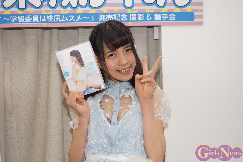 1月10日、グラビアアイドルの東城かれんさんの1stDVD「純粋少女 ~学級委員は桃尻ムスメ~」(ClubTeen’s)の発売記念イベントが秋葉原のソフマップモバイル館で行われた。