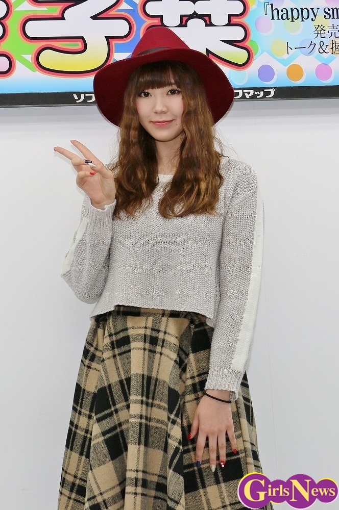 1月11日、元SKE48の金子栞さんのDVD「happy smile」(イーネット・フロンティア)の発売を記念し、秋葉原のソフマップアミューズメント館でイベントが行われた。