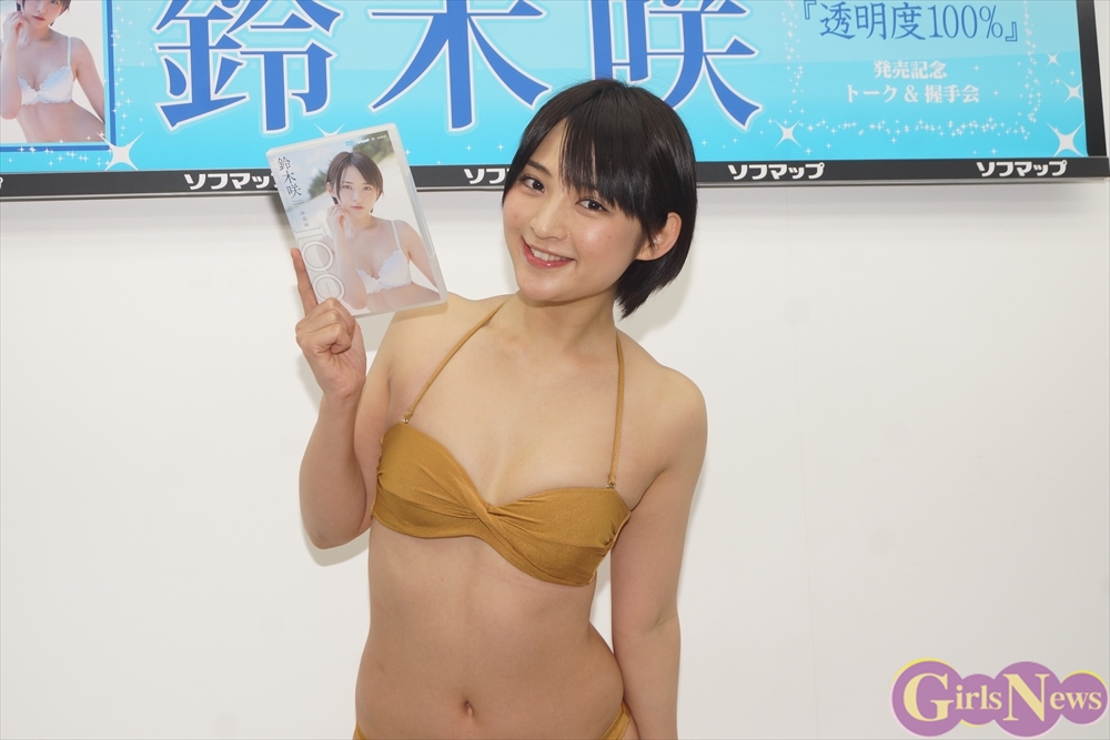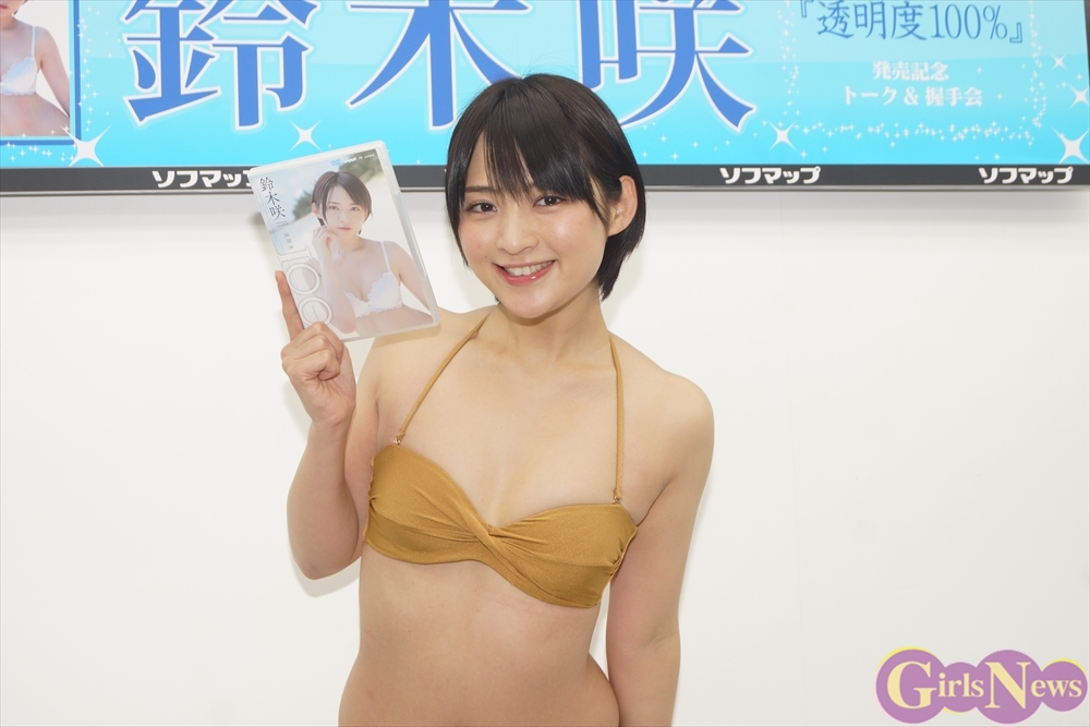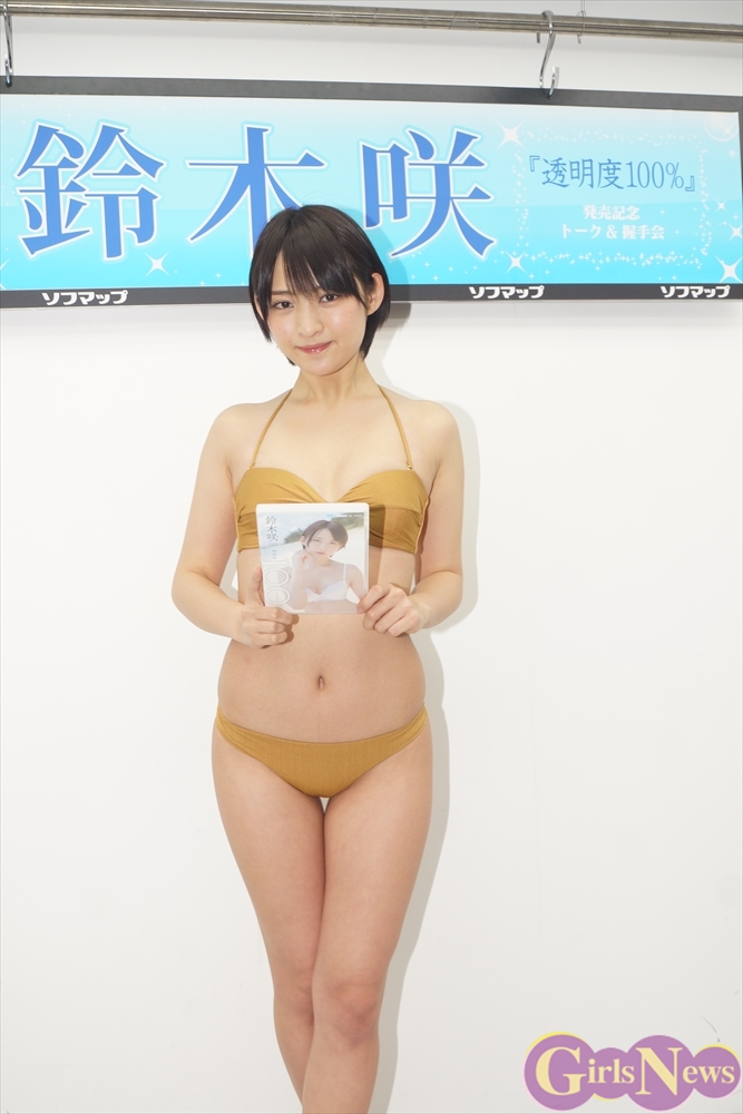 2月28日、グラビアアイドルの鈴木咲さんの6枚目のDVD「透明度100%」(エアーコントロール)の発売記念イベントが秋葉原のソフマップアミューズメント館で行われた。