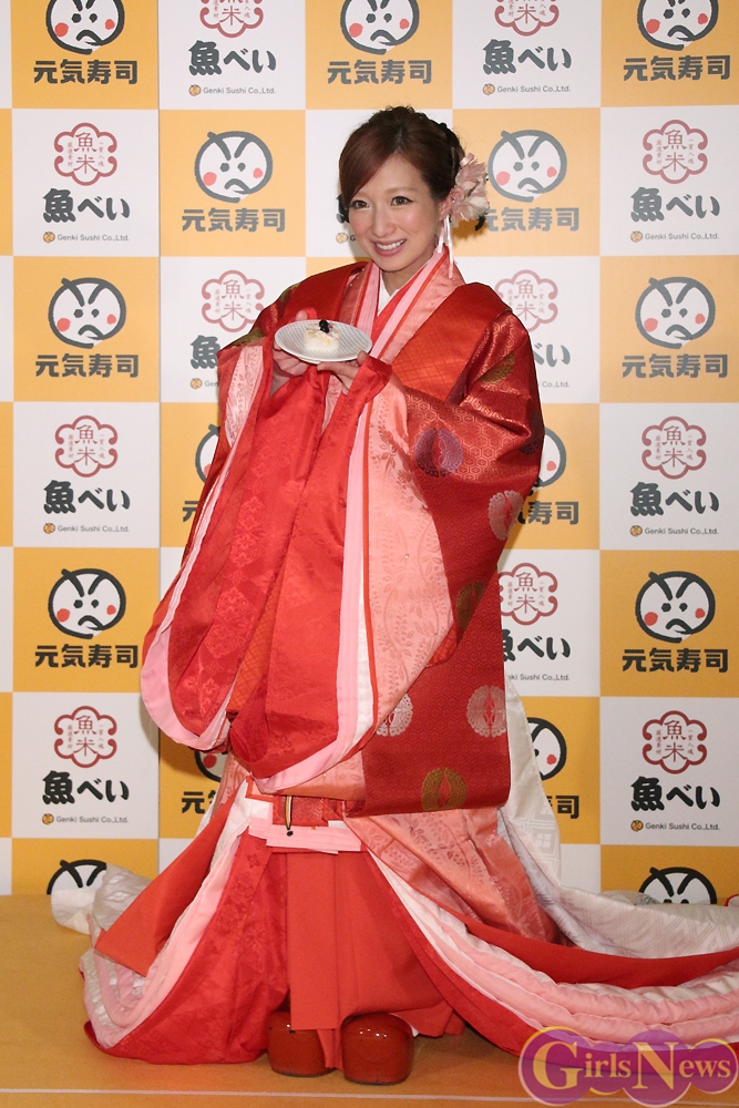 ひな祭りのお雛さまのような十二単を着た辻希美さんは、前日に聞かされて初めて本当に十二枚も重ねて着るんだと知ったといい、「思ったより軽いけど重い。子供が3カ月くらいの時に抱っこした感じですね。」と三児の母らしい感想を述べた。