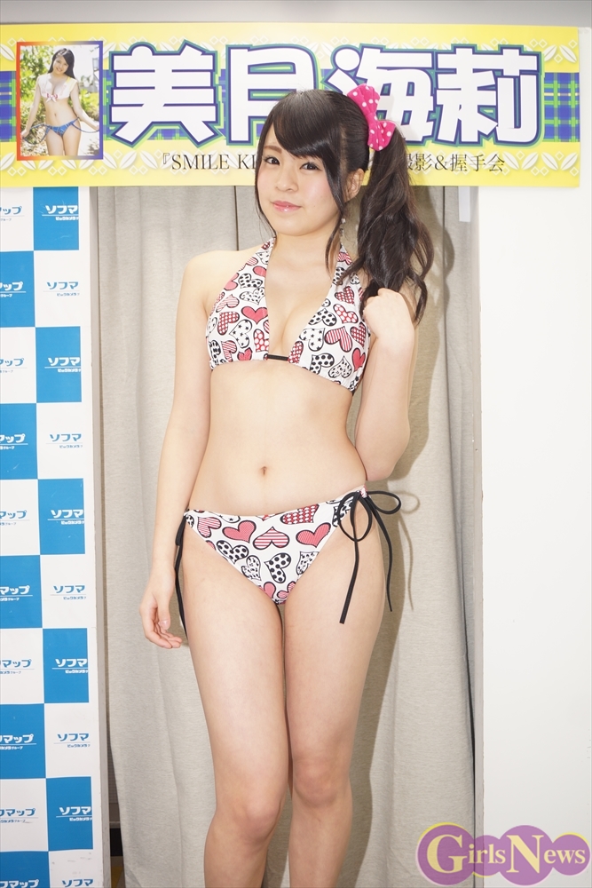 3月8日、現役女子高生グラビアアイドルの美月海莉さんの5枚目のDVD「SMILE KISS♥」(スパイスビジュアル)の発売記念イベントが秋葉原のソフマップモバイル館で行われた。