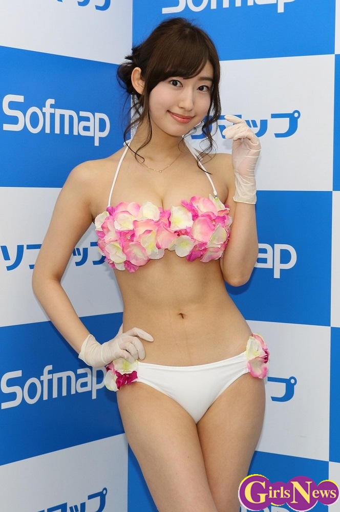 キャッチフレースの『エロ清楚』について「相反するものだと思いますが、ただエロスなだけでなくて清楚な要素も入れています。チャームポイントはウエスト、もっと絞って50cmにしたいと思います。」とアピールしていた。
