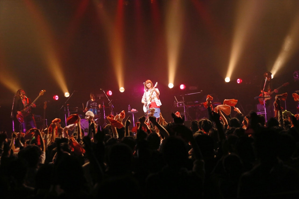終盤に差し掛かると、アップテンポのナンバーを畳み掛けるように演奏し、ファンには恒例となった“タオル回し”で一気にヒートアップ。「今年もたくさん曲を書いて、ライブでもたくさん披露して、バリバリ活動していきたいと思っています。2015年の山崎あおいもよろしくお願いします!」と笑顔でファンに呼びかけ、アコースティックギターを弾きながら「強くなる人」を熱唱。熱気に溢れたライブは幕を閉じた。