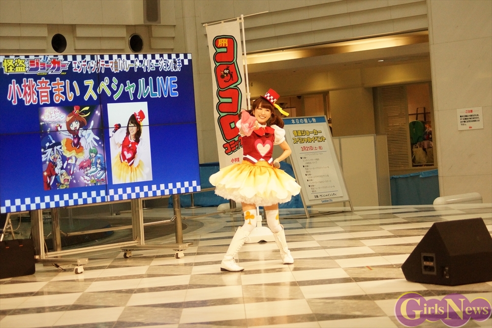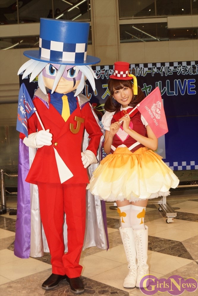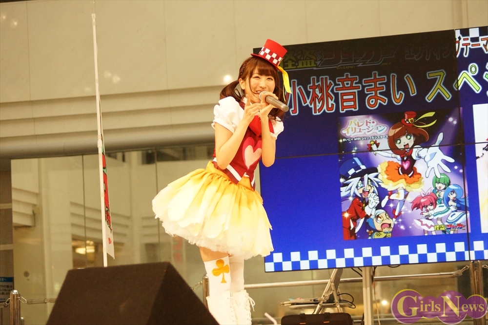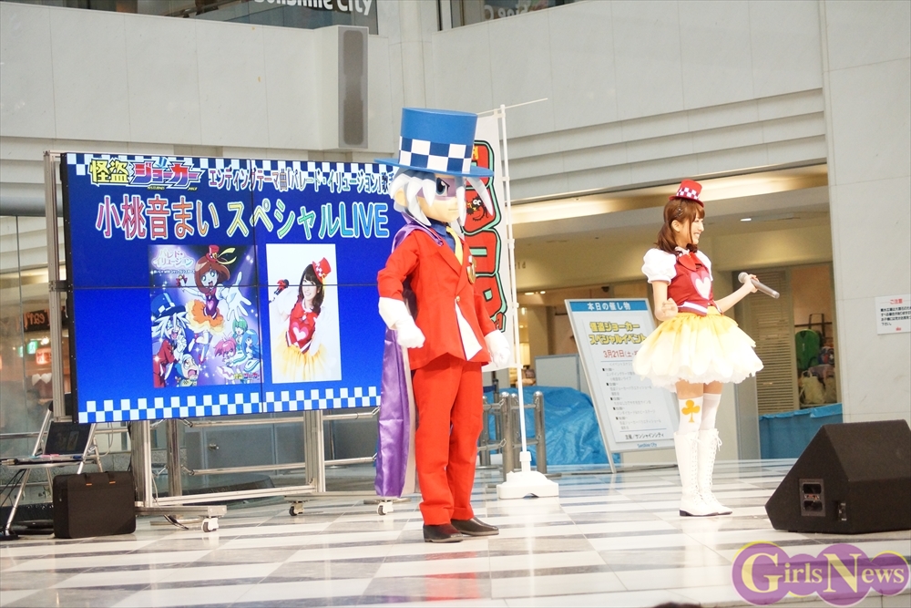 3月21日、TOKYO MXやキッズステーションなどで放送されているTVアニメ「怪盗ジョーカー」のスペシャルステージが池袋サンシャインシティ 噴水広場で行われ、“まいにゃ”の愛称で人気の歌手・小桃音まいさんが登場した。