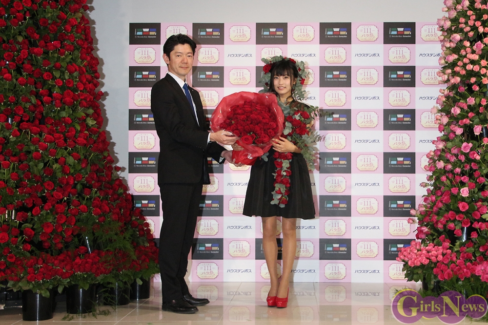 バラは一番好きな花だという小島瑠璃子さんは「高価なのでたくさんは買えないですが、家で一輪挿しにして飾ったりします。大好きなマンガの“パラダイス・キス”に青いバラが出てくるので、それを見つけて買って帰ったことも。」と話した。そして、「母もバラが好きなので、一緒に“バラ祭り”に行って親孝行するのもいいな。休みをもらいたいです。」とすっかり「バラ祭り」へ心を惹かれた様子だった。
