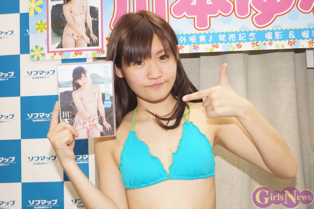 4月4日、グラビアアイドルの川本ゆなさんの4枚目のDVD「ゆなの課外授業」(エスデジタル・シスター)の発売記念イベントが秋葉原のソフマップモバイル館で行われた。