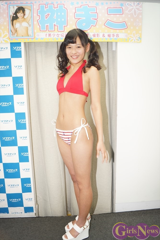 4月5日、グラビアアイドルの榊まこさんの1stDVD「美少女伝説」(スパイスビジュアル)の発売記念イベントが秋葉原のソフマップモバイル館で行われた。