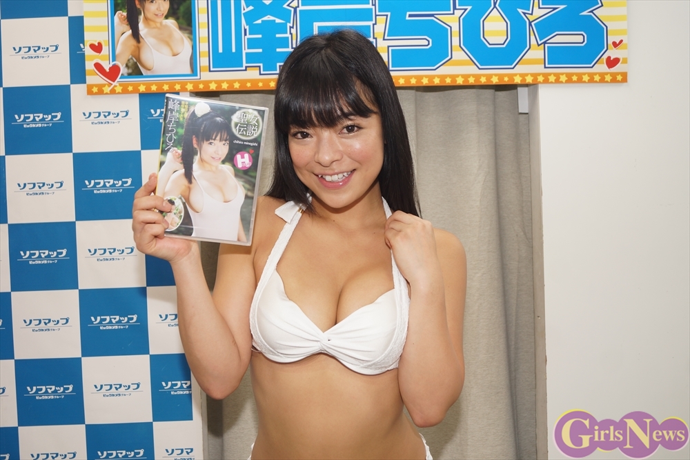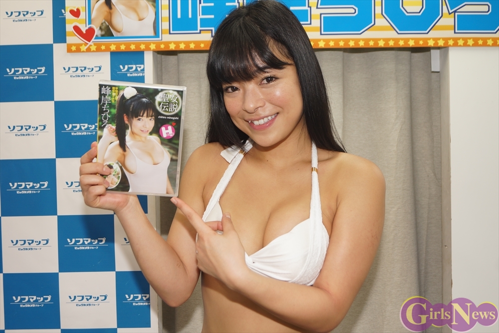5月23日、Hカップグラドルの峰岸ちひろさんの1stDVD「聖女伝説」(スパイスビジュアル)の発売記念イベントが秋葉原のソフマップモバイル館で行われた。