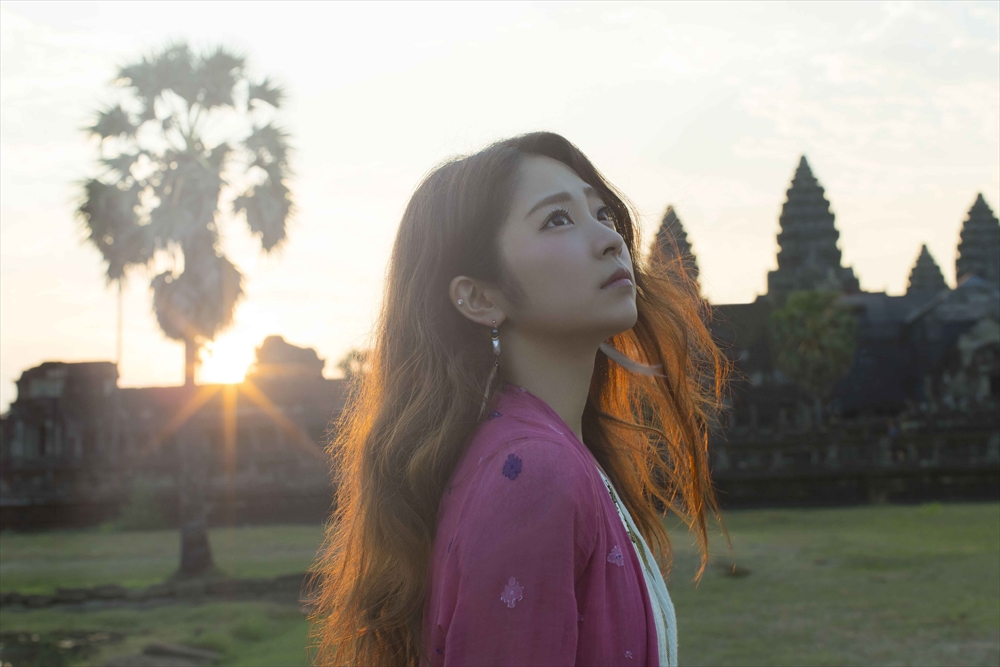この写真は、先日、収録曲「この世界で想うたった一人のひと」のMusic Video撮影を行ったアンコールワットで撮られたもので、背景にそびえ立つアンコールワットから覗く朝日が、彼女のリスタートにかける想いを一層際立てている。