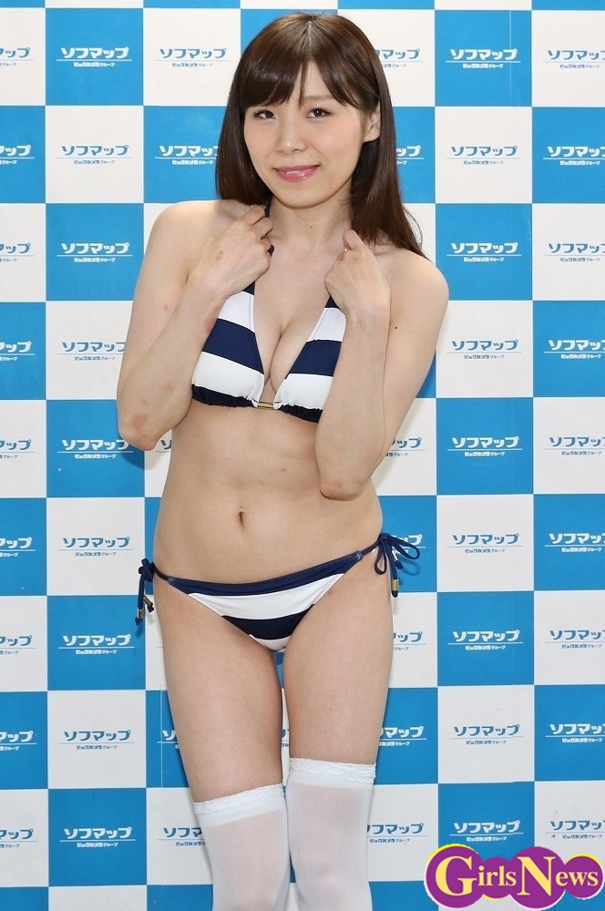 6月20日、グラビアアイドルの三井里彩さんの1stDVD「愛情表現~下手な私をどう思います?~」(スパイスビジュアル)の発売を記念し、秋葉原のソフマップアモバイル館でイベントが行われた。