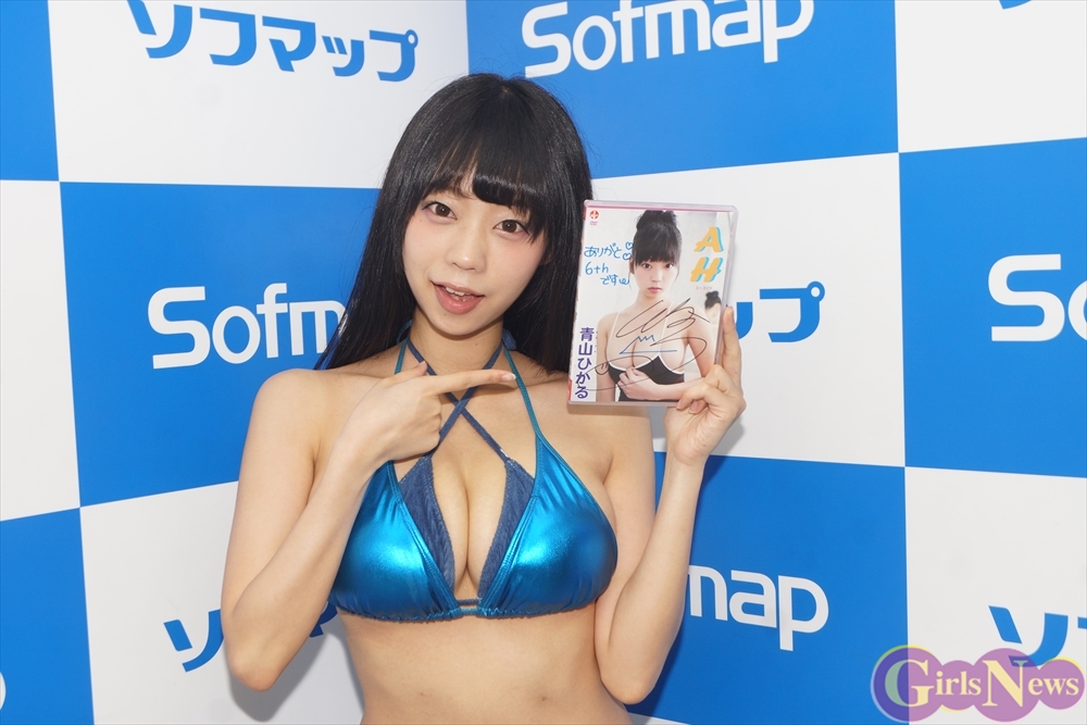 6月28日、グラビアアイドルの青山ひかるさんの6枚目のDVD『AH』(エスデジタル)発売記念イベントが秋葉原のソフマップアミューズメント館で行われた。