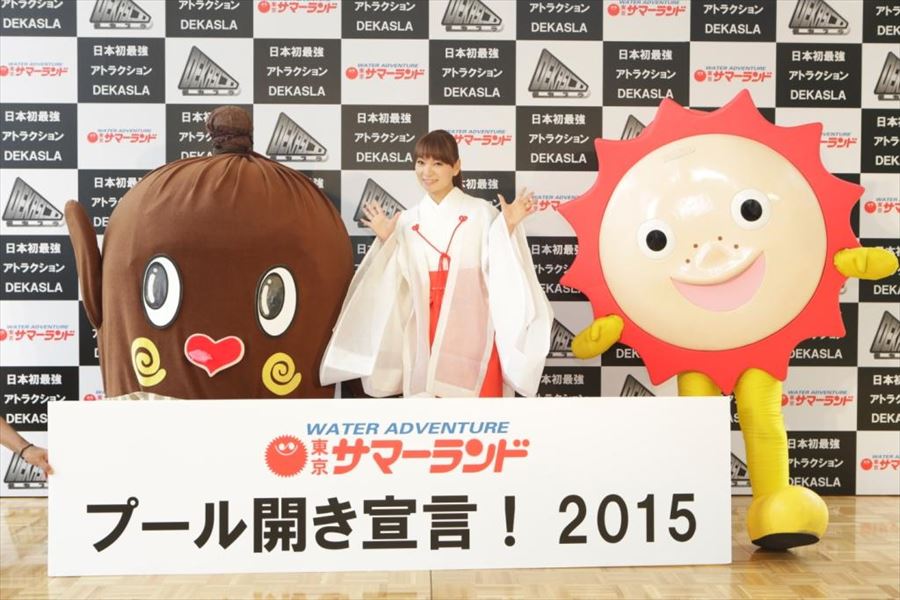 6月29日、東京サマーランド内屋外特設イベントエリアにて、プール開きのPRイベントとして「東京サマーランド プール開き宣言!2015」を開催、イベントには、モーニング娘。OGで現在も活躍中の保田圭さんと、ゆるキャラとしても人気が高い納豆の妖精”ねば~る君” が登場。