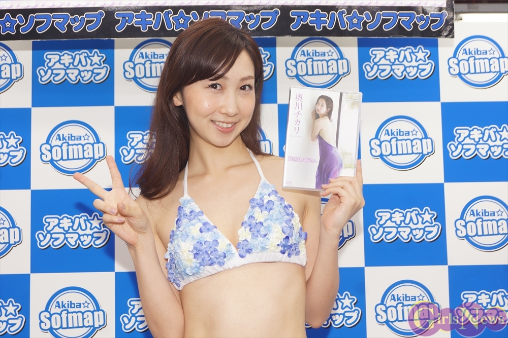 7月18日、グラビアアイドルの奥川チカリさんの1stDVD『魅惑なお姉さん』(イーネット・フロンティア)発売記念イベントが秋葉原のアキバ☆ソフマップ1号店で行われた。