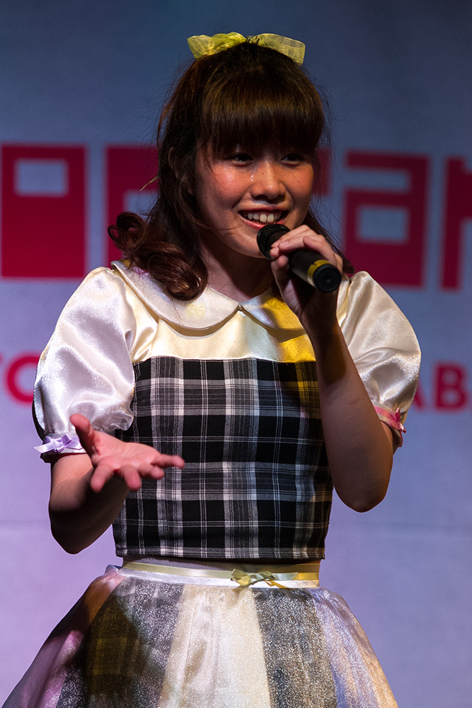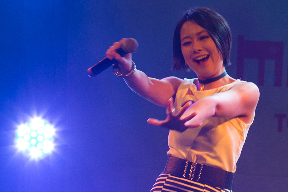 グループが多いなかで、ソロでの登場。MCとのトークでは、イベント出演依頼が多数きている話などが聞けました。ライブでは、大人しそうな外見とはことなり、アグレッシブな感じのステージでした。
