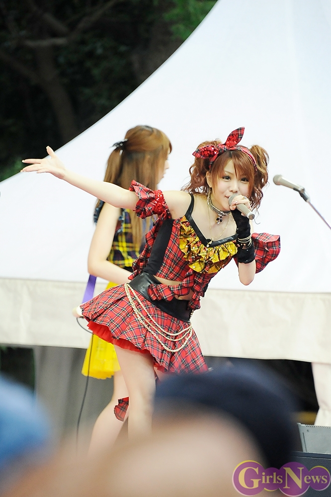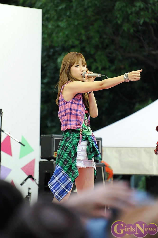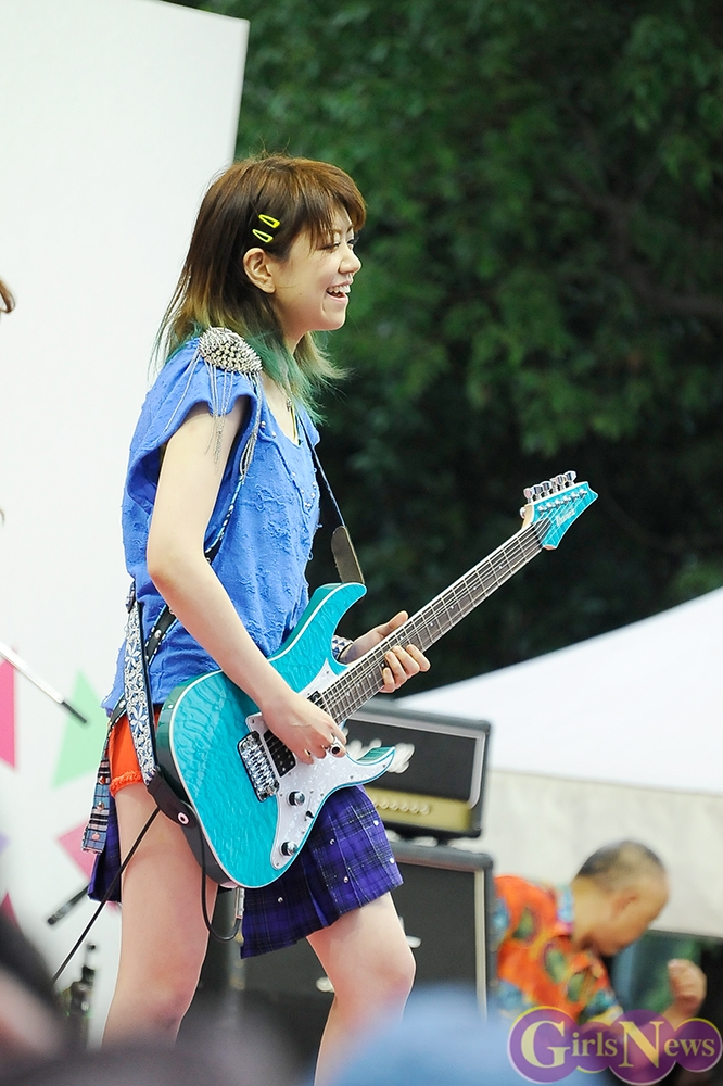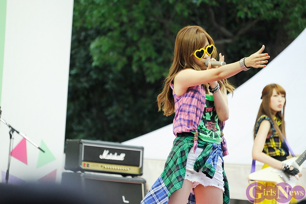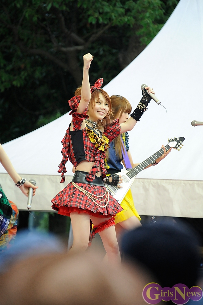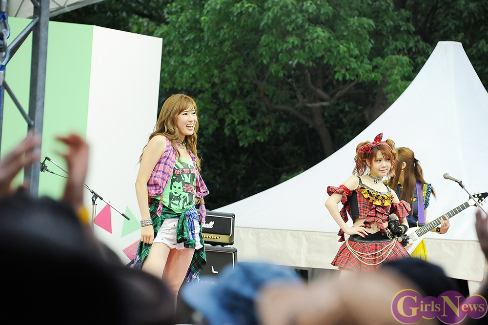 7月1日にリリースした両A面メジャーデビューシングル「イイじゃない!」、つんく♂さんが作詞した「普通の私 ガンバレ!」を含む計4曲を披露し、夕暮れの野外ステージを熱く揺さぶった。