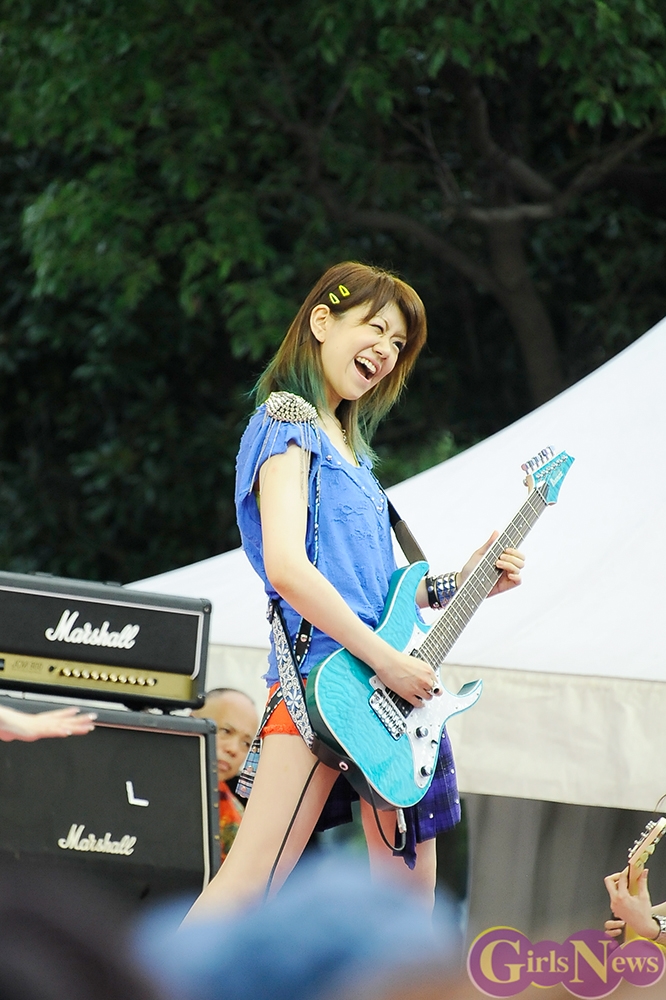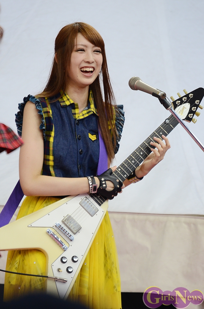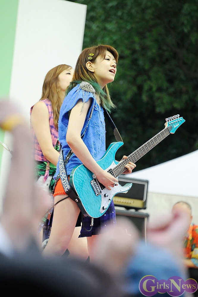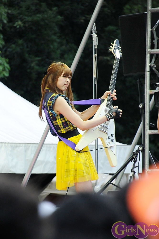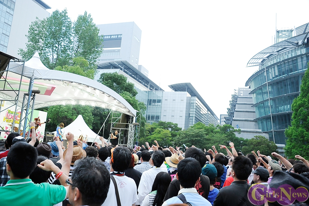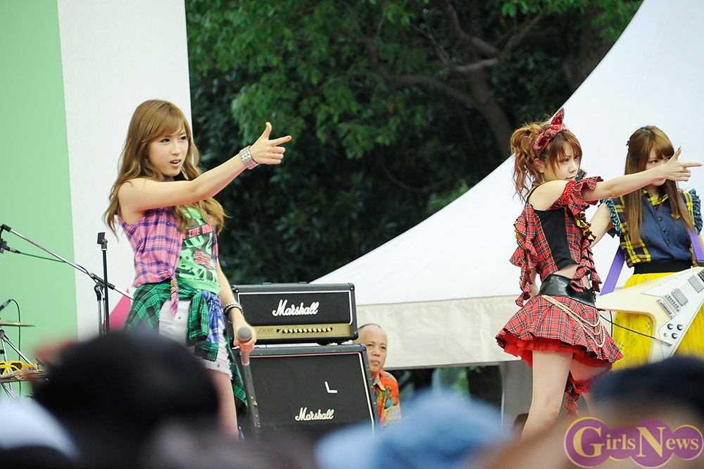 7月1日にリリースした両A面メジャーデビューシングル「イイじゃない!」、つんく♂さんが作詞した「普通の私 ガンバレ!」を含む計4曲を披露し、夕暮れの野外ステージを熱く揺さぶった。