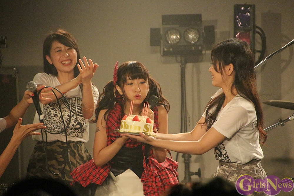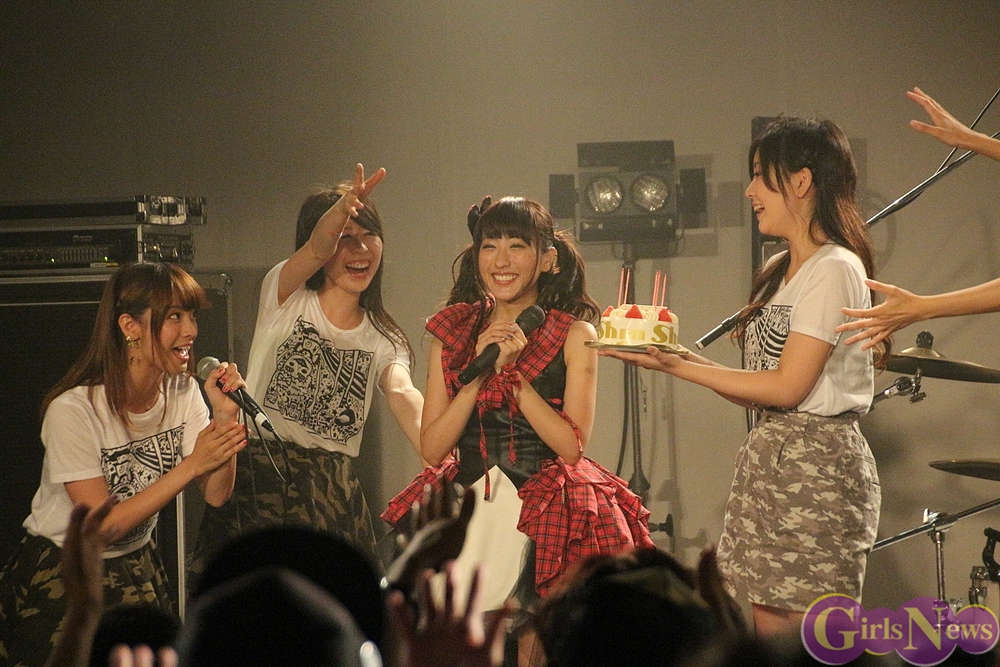 いよいよ曲が流れだそうとした瞬間、凸凹凸凹-ルリロリ-のメンバーたちが「おめでとー!」とステージに飛び込んできて、まいにゃにバースデーソングのサプライズをした。まいにゃはドッキリしながらも「めっちゃ、嬉しいです!」と目を細めて笑った。