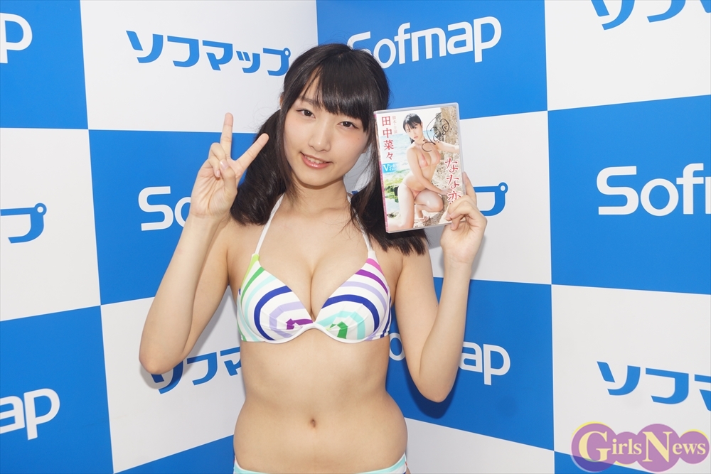8月30日、グラビアアイドルの田中菜々さんの15枚目のDVD『なな恋 前編』(スパイスビジュアル)発売記念イベントが秋葉原のソフマップアミューズメント館で行われた。