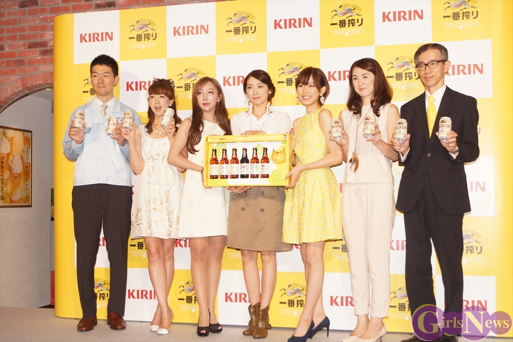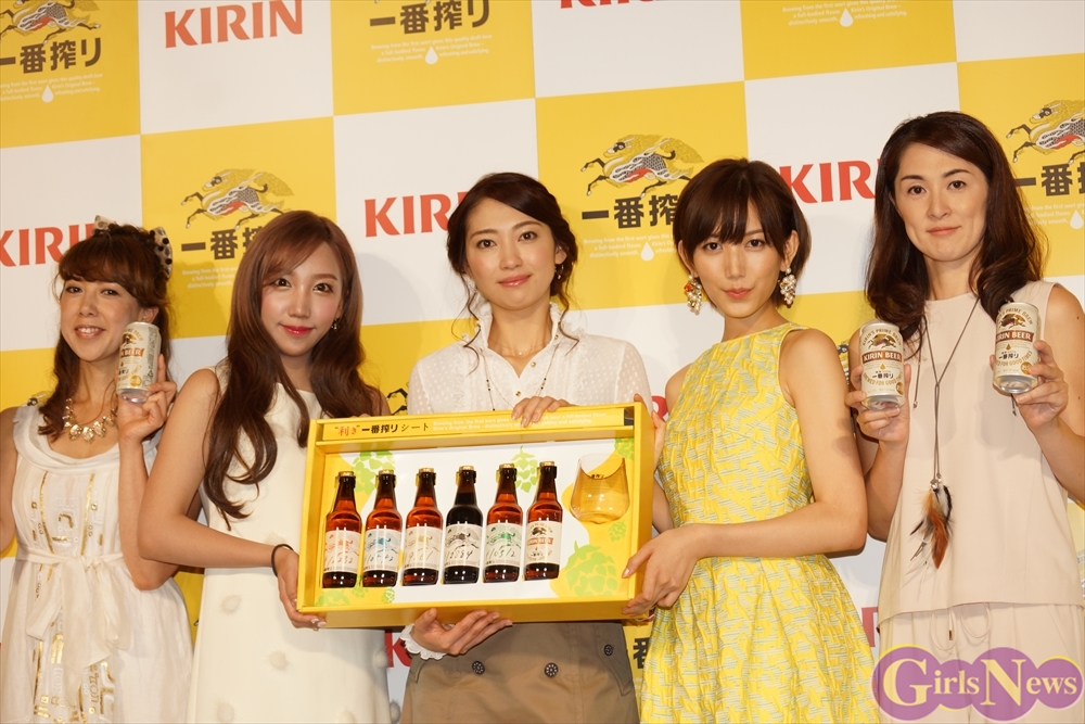 9月1日、キリンビールが5種類の「一番搾り」を専用グラスで飲み比べできる「一番搾り『5つの香りをくらべる“利き”一番搾りセット』絶対もらえるキャンペーン」の記者発表会が渋谷のキリン一番搾りガーデンBrewer’s Spirit 東京店にて行われ、飯田圭織、大原かおり、ざわちん(小澤かおり)、菅山かおる、光宗薫の5人が登場した。