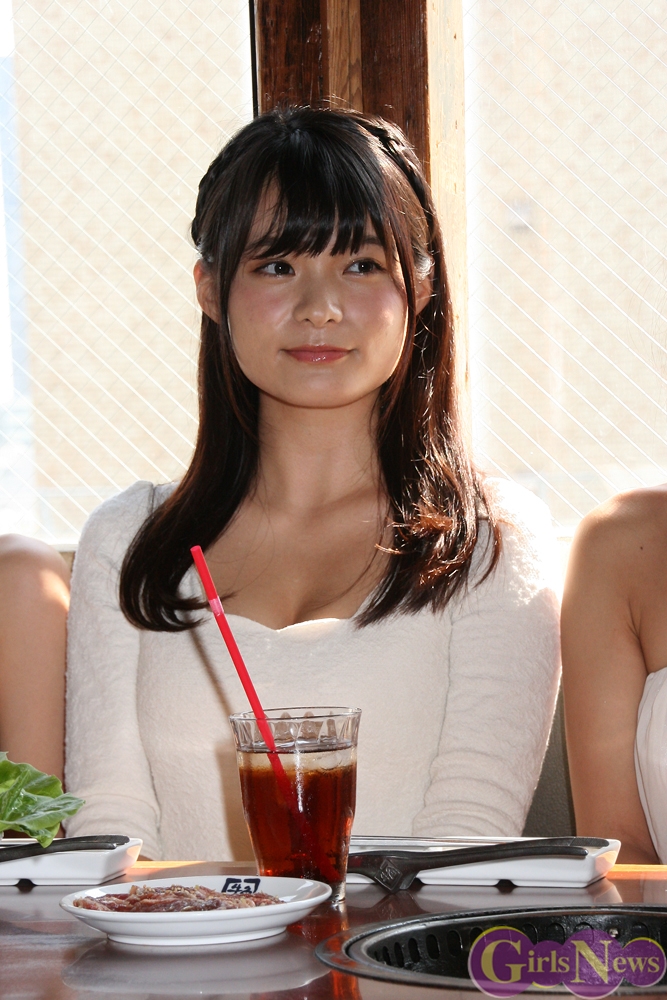 岸明日香さんは、「外食といえば焼き肉というくらいお肉が大好き。お肉は巨乳のもとなので、皆さんにもお肉を食べて巨乳になってほしい。」