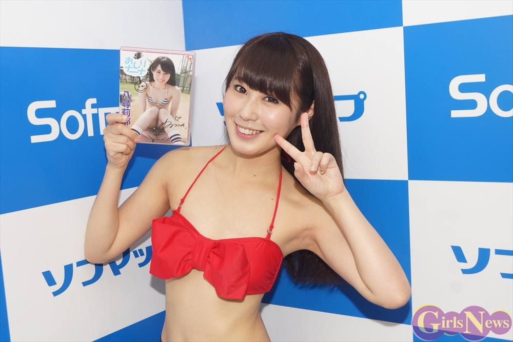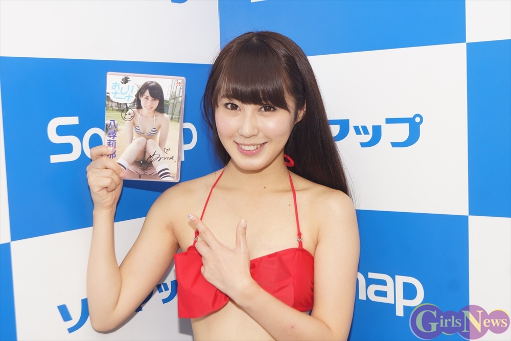 9月6日、グラビアアイドルの八尋莉那さんの1stDVD『おしリナーナ』(エスデジタル)発売記念イベントが秋葉原のソフマップアミューズメント館で行われた。