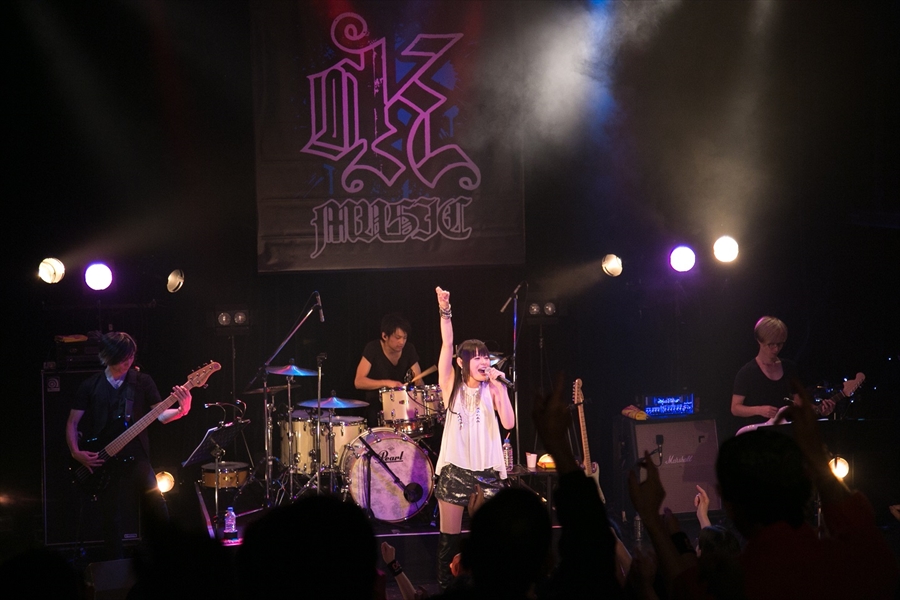 ステージは、人気アーケードゲーム『ガンスリンガー・ストラトス2』のサントラ曲Soul Evolution」からスタート。織田は、生バンドの爆音ロックに負けない力強い歌声を聴かせ、客席からありったけの歓声と拍手で迎え入れられました。「最後までついてきてくれますかー?」と大きく拳を振り上げると、またも大きな歓声が! 早くも会場は一体となり、これから始まるステージへの期待がさらに高まりを増した。