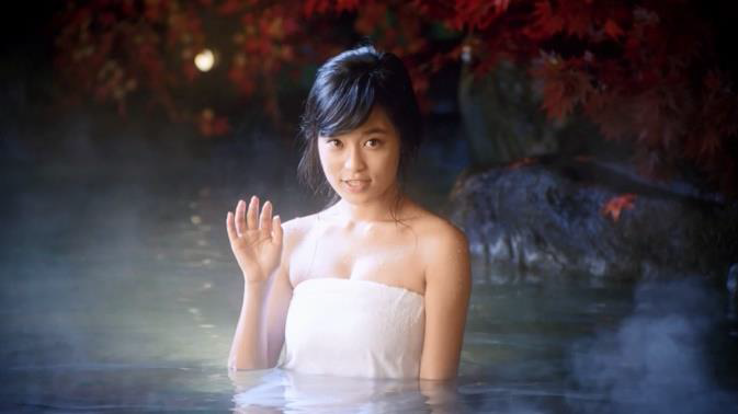 温泉で小島瑠璃子さんに偶然出会った男性の目線で進行され、「ギュッ」「しっとり」といったセリフを、かわいさと色っぽさ一杯に喋っているこじるりを見ることができる。