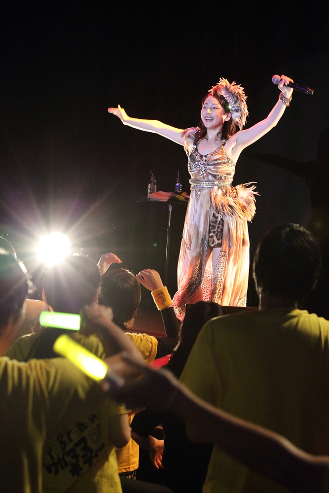 その後、吉川友のライブで定番の盛り上がりナンバーが次々に披露される。客席のファンは、ステージ上の吉川に負けじとペンライトを振り、クラップを鳴らし、タオルを振って声援を送る。しかし、送っても送っても、MCは挟み込まれることなく曲が続いていく。