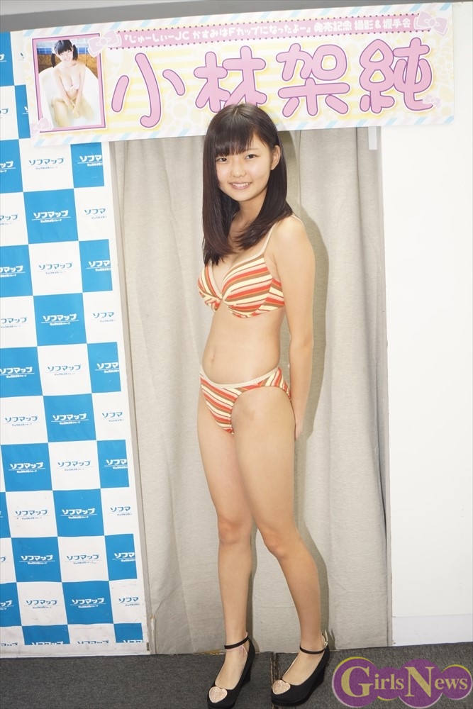 11月15日、グラビアアイドルの小林架純さんの2ndDVD『じゅーしぃーJC かすみはFカップになったよー』(Club Teen’s)発売記念イベントが秋葉原のソフマップモバイル館で行われた。