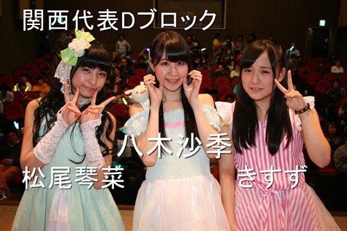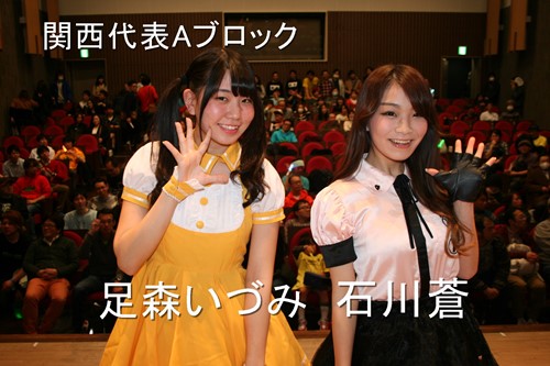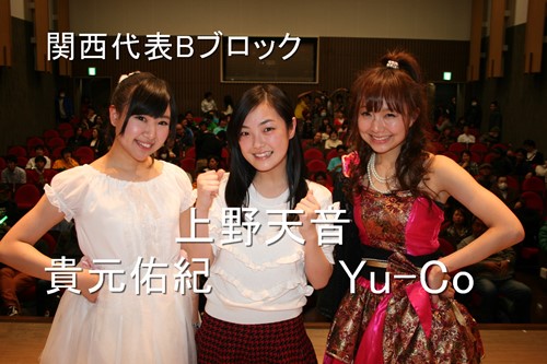 関西は多くのアイドルグループがひしめく激戦区のため、非常にハイレベルな闘いになった。その結果、Aブロックは1位石川蒼さん(DDプリンセス)、2位石原みくるさん(Little Blossom)、3位足森いづみさん(天空音パレード)、Bブロックは1位上野天音さん(キャラメル☆リボン)、2位Yu-Coさん(OSAKA翔GANGS)、3位貴元佑紀さん(chouette*)、Cブロックは1位西田早希さん(OSAKA BB WAVE)、2位JUNNAさん(PPanashie★a~パナッシェ)、3位CAIさん (S-QTY:R)、Dブロックは1位八木沙季さん(Lovelys!!!!)、2位きすずさん(KIsuzuKA)、3位松尾琴菜さん(Miniature Garden)以上12名が関西代表に決定した。