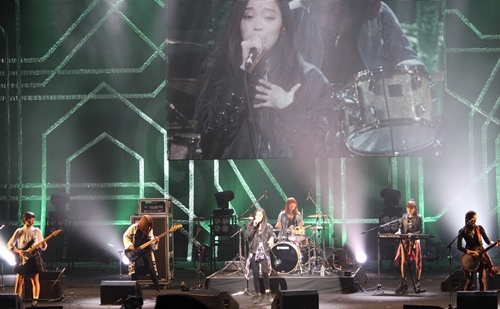 コムシコムサは5人組ガールズバンド。バンド活動と並行してモデル活動も行っているということもあってか、ビジュアル的に映えるステージングで魅せ、『Re:15時』『バカ男』の2曲を披露した。「こんな大きなところでライブをしたんだな」と感激の表情を見せ、「今年は全国各地でライブを行いたい」と意欲を見せた。