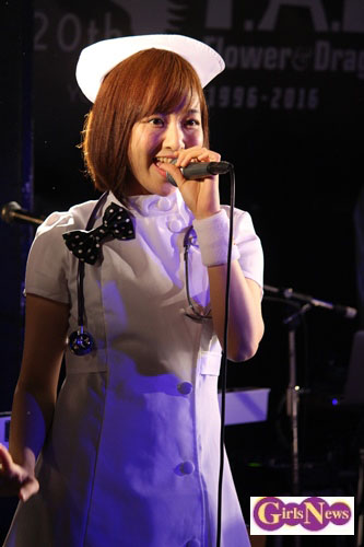 このツアーのタイトルは、二組のグループ名の組み合わせに、“実験”(experiment)を意味する「EX」を加えたもの。「5人でこのツアーを通して新しいことに挑戦していこうということでこのツアータイトルになりました」(岡田さん)、「衣装をナース服にしたのは『ラベビタEX』のタイトルが栄養ドリンク剤っぽいということで、みなさんを元気にしようと…」(長谷川さん)とのこと。テーマは“病院”で、患者である観客の相手をする担当看護師が5人のメンバーということだ。