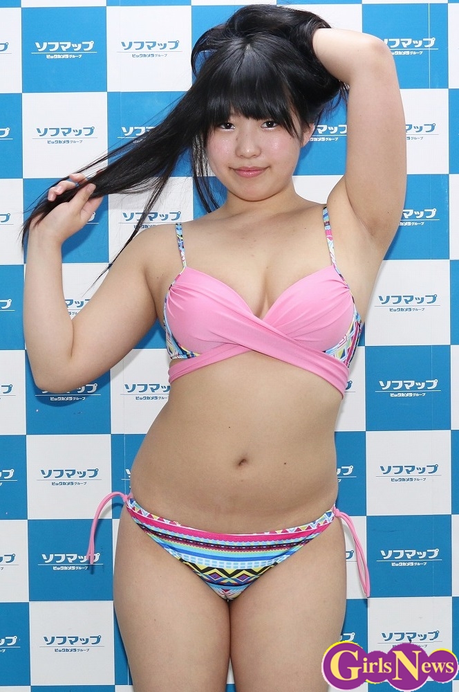 DVDの内容について「ジャケットにもなったエアロビのシーンとか、今回は動くことが多かったです。チアガールや売り子さんになりスポーツ系のイメージです。お気に入りの衣装はスクール水着、1サイズ小さくて胸元からおへそにかけて大きく空いていす。ポロリはありませんでした。見て欲しいシーンはランジェリーがいちばんセクシーで、今までにない大人っぽいシーンです」と紹介した。