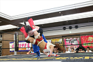 勢いに乗った才木はコーナーに登って滝川に技の狙いを定めるが、ここで滝川がマイクを要求し、得意の実況パフォーマンスを始めた。「みんなが筋肉を見たがってる」とおだてられた才木は筋肉ポーズを自慢気に披露して観客にアピールした。滝川は (しめた! ) と言わんばかりに背後から襲い掛かかり、さらにスーパーキックを放った。