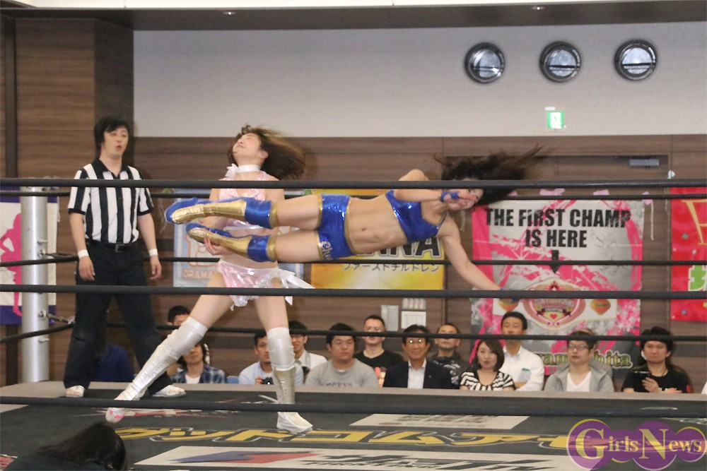 この日の対戦カードで注目を集めていたのは、“筋肉アイドル”として知られる才木玲佳さんと、アナウンサーになるためにプロレスをしているという異色レスラーの滝川あずささんによるシングルマッチ。
