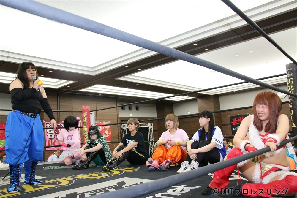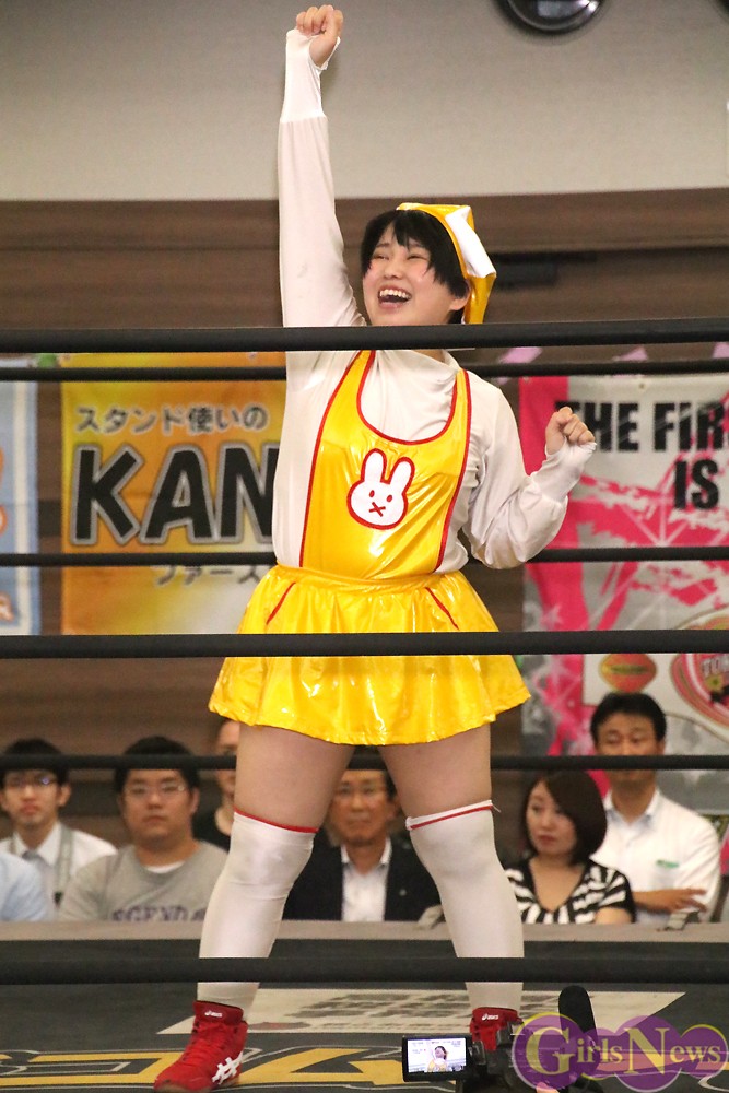 一方の才木は「とにかく勝ててよかった。入場の時にたくさんの紙テープを投げていただいたので、期待に応えられて嬉しい。得意技のキャメルクラッチを決められてよかった」と笑顔を見せた。他団体の滝川との戦いについて「途中でマイクの実況を初めて戸惑いました。これまではそういうのは絶対なかったので」と答えた。初めて東京女子プロレスの大会に出てみて「みなさんがすごく暖かく見てくれたので、違和感はなかった」と好印象を残したようだった。