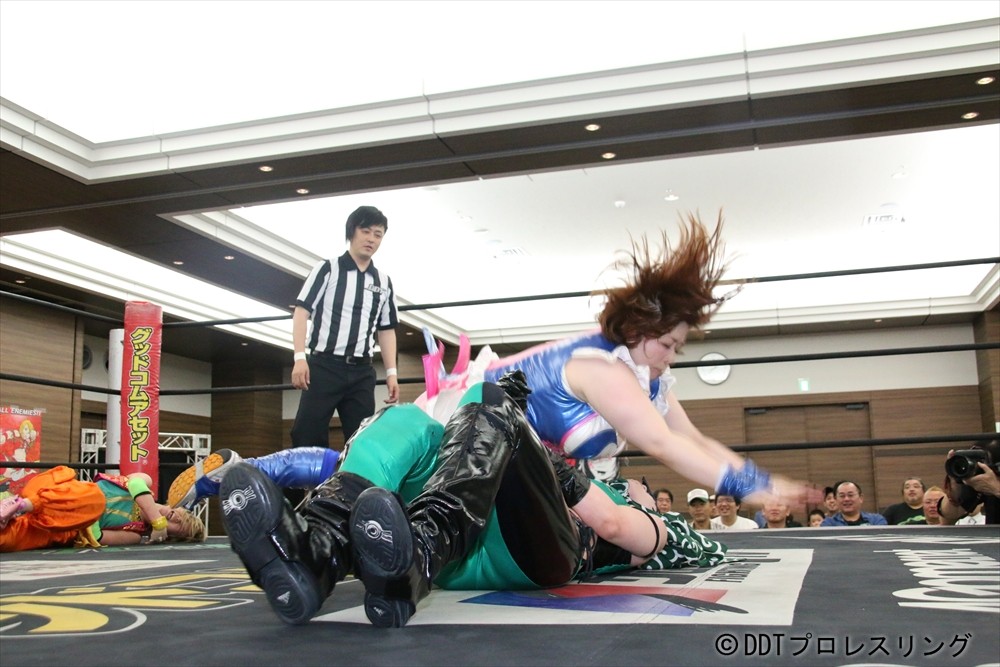 一気に連続技で巻き返しを狙った滝川だったが、才木にブレーンバスターで投げられて大きなダメージを受けた。最後は才木がキャメルクラッチで滝川を沈め、コーナーに登ってガッツポーズを決めた。