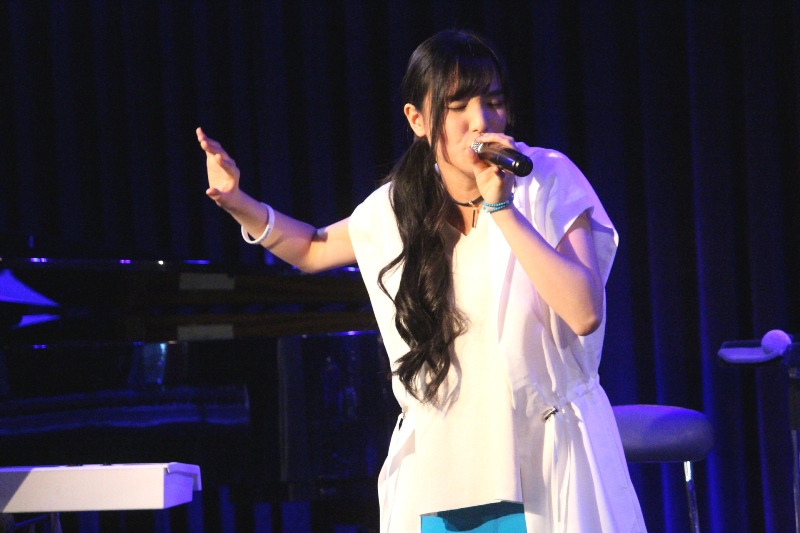 その後田﨑さんの作詞作曲による『あいうえお』を愛らしい雰囲気で披露すれば、同じく田﨑さん作詞作曲の『蕾』は張り詰めた空気感の中、熱い気持ちのこもった歌声を披露、観客たちは聴き入っていた。