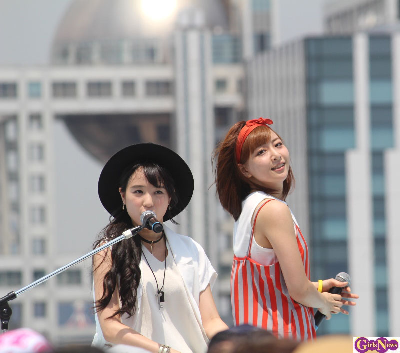 田﨑あさひさん、長谷川萌美さんによる二人組ガールズユニット・Bitter & Sweetが、7日まで台場、青海地区で開催された『TOKYO IDOL FESTIVAL 2016』(TIF2016)の初日5日に登場。湾岸スタジオ屋上のSKY STAGEのライブを体験し、長谷川さんは「やっぱり野外ステージは気持ちよかったです!お台場の景色を一望できる中で歌えて!」と感激し、田﨑さんは「自分の目の前に盛り上がってくださるお客さんと、海と空が見えて、すごい気持ちよかったです!」ととびきりの笑顔で語った。