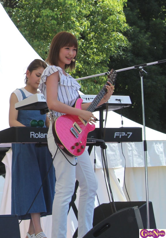 雑誌『Popteen』専属モデルのShioneさん(ボーカル、ギター)をはじめ、全員がファッション誌モデル経験者ということで、メンバーのルックス面でも定評があるLe Lien。今年は2日目の6日に登場し、湾岸スタジオ横のSMILE GARDENにて野外ライブを行った。