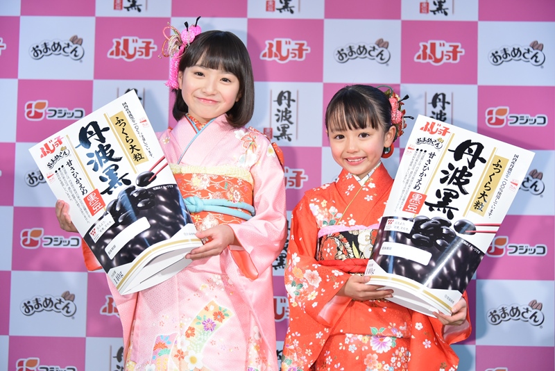 テレビCMでは、初代ふじっ子ちゃんである田牧さんと、2代目ふじっ子ちゃんである元倉さんが晴れ着姿で共演。丹波黒黒豆のパッケージを仲良さげに掲げる姿がとてもキュートな仕上がりになっている。
