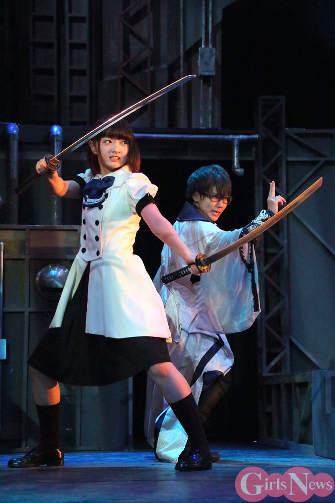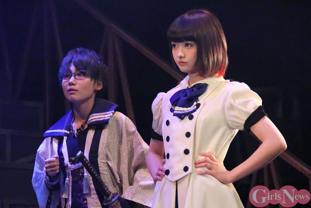 明里の相棒・八咫烏(やたがらす)役の平田梨奈さんは、「稽古ではきちんと出来た試しがなくて迷惑かけてばかりだったのですが“本番には強いから許して”と言い続けながら今日を迎えました。ゲネプロは演じていて楽しかったので、本番ではお客さんに満足していただけるように頑張ります」と意気込んだ。