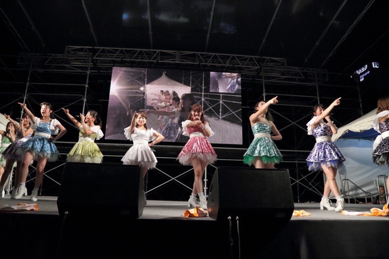 メンバーの小栗かこさんにとっては地元・名古屋でのイベントということで、「栄に集まってくださっているみなさん、大きな声で行くよ!」と叫ぶと「あーかこちん!」の大声援が響き渡った。