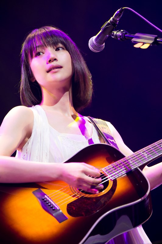 2曲目の『シャボン玉みたいに』が終わると、「今日はひとりだけのライブということでいつもと違う心地よさを感じています。皆さんも友達の部屋で聴いているような感じで聴いてください」と観客に語りかけた。そして「つながりを大事にしたい」というメッセージに続き演奏されたのは、昨年リリースのアルバム収録曲でもある中島みゆきさんの『糸』のカバー。続いて、昨年本人が出演したフジテレビ系月9ドラマ『ラヴソング』の劇中歌『恋の中』(作詞作曲:福山雅治)を披露。初めての経験となったドラマ出演を通して広がった表現力をいかんなく聴かせた。