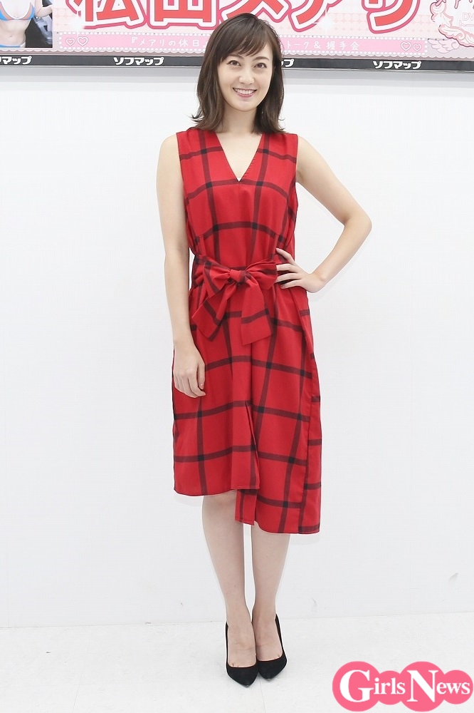 女優の松山メアリさんがDVD『メアリの休日』の発売記念イベントを2日、ソフマップアミューズメント館で開催した。