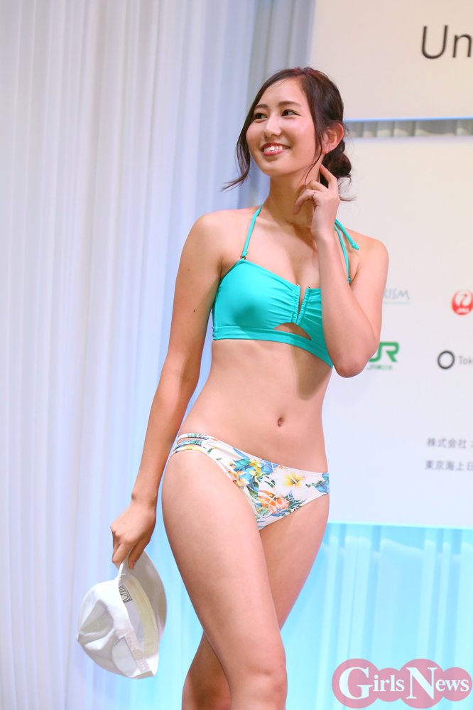 16代目三愛水着楽園イメージガールを務めてきた熊江琉唯さんが23日、東京ビッグサイトの「ツーリズムEXPOジャパン」の会場で開催された水着ショーで、イメージガール卒業イベントを行った。