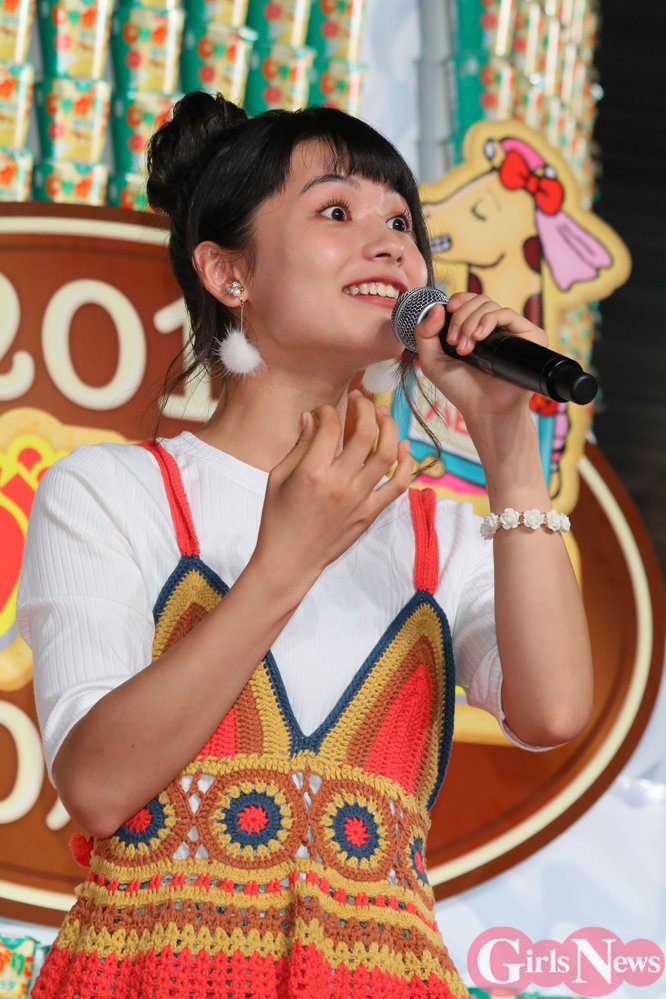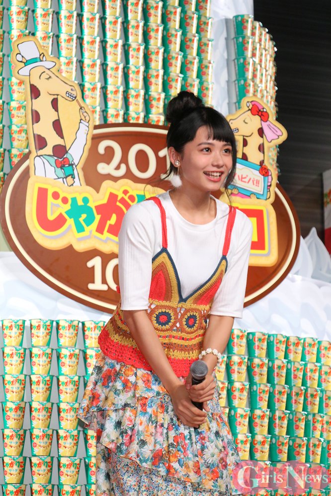 「じゃがりこの日 じゃがりこパーティー」と題したこの日のイベントに登場した足立さんは、14日の誕生日が間近ということで、巨大なじゃがりこリュックをプレゼントされるサプライズにビックリして目をうるませた。