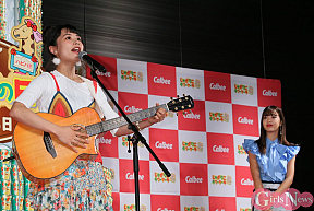 現役女子高生シンガーソングライターの足立佳奈さんがPR大使を務める「じゃがりこの日」を記念するインベントが2日、ベルサール秋葉原で開催され、足立さんとスペシャルゲストの藤田ニコルさんが出席した。