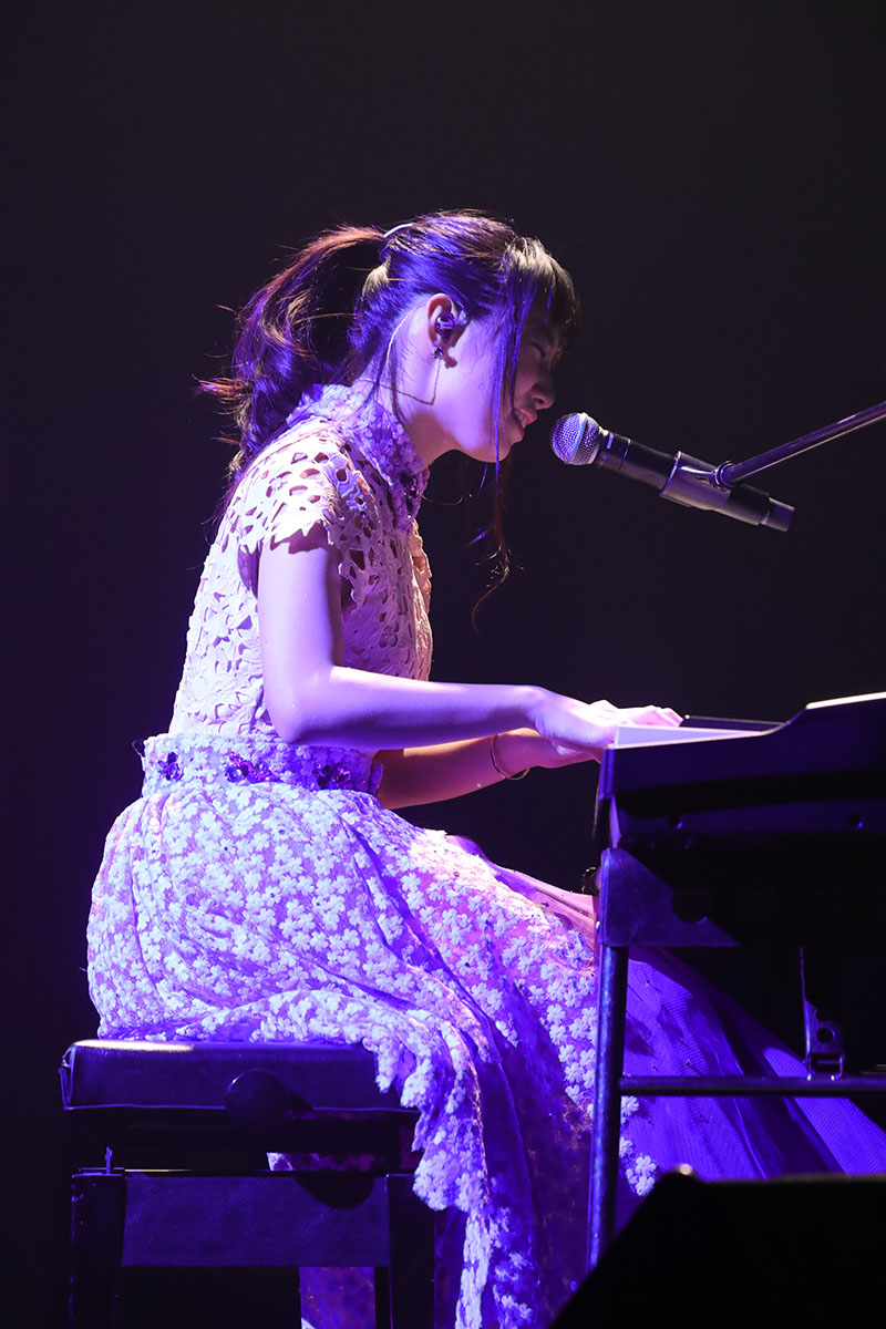 母親への感謝を歌った『おはよう』では、「大切な人へ歌で感謝の想いを伝えたいと思います」と、しっとり始めると、序盤にこみ上げてきた涙で歌えなくなる場面も。ファンの声援を受け、声を詰まらせながらもピアノと息を合わせ、最後まで歌い上げた。