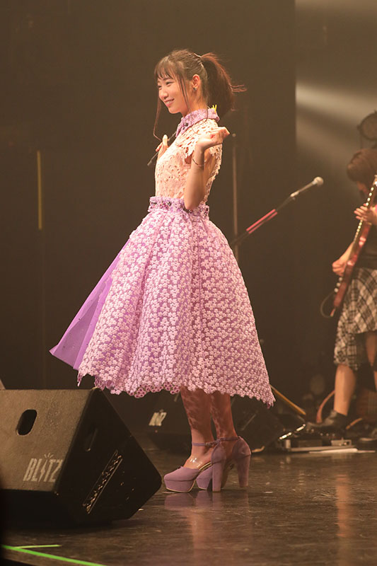 その後、『だって君のカノジョだもん。』、続いて「デビューした頃の自分へ向けて書いた曲」という『あの日の私へ』を披露し、会場が感動につつまれる中、上野さんはBLITZに立つまでの不安や想いを話し、「私以上に今日のステージを楽しみにしていてくれたファンのみんながいます。みんなが“一緒に頑張ろう”と声をかけてくれたことが一番支えになりました」と、今日までファンがともに歩んでくれたことに感謝を表した。